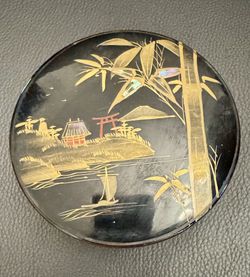 Vintage Black Lacquer Hand Painted Wood Japanese 8 Piece Canister w Coasters 4”$9Phoenix, AZ