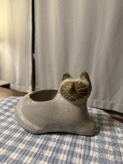 Vintage 1970's David Stewart Lion's Valley Stoneware Pottery Cat Planter MCM 11"$40San Fernando, CA
