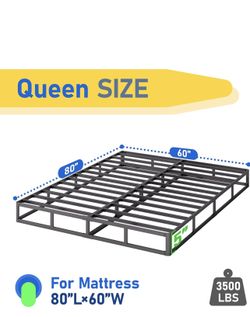 Queen Bed Box Spring 5 Inch High, Low Metal Bed Frame $70Charlotte, NC