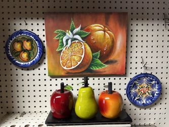 ON SALE!!! Vibrant Kitchen Decor Set: Hand-Painted Talavera Plates, Citrus Still Life Canvas, & Ceramic Fruit Trio$20Alameda, CA