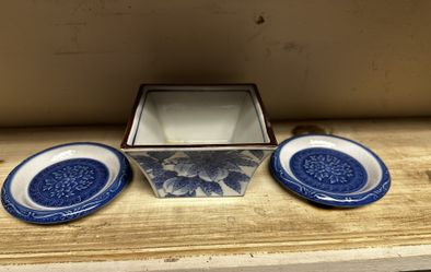 CLEARANCE!!! Vintage Blue & White Porcelain 3-Piece Set - Square Bowl & Small Plates$5Oakland, CA