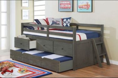 NEW GRAY TWIN LOFT BED W/ STORAGE DRAWERS & TRUNDLE BED$699Hesperia, CA