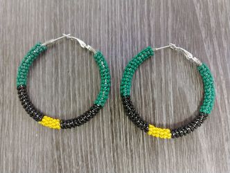 Jamaican Flag Colored beaded hoops