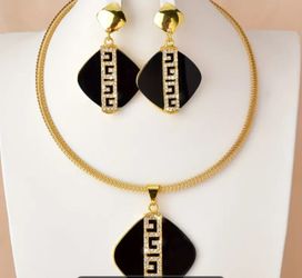 Women 18K Gold Plated Vintage Elegant Dangle Earrings and Black Square Pendant Necklace Set*$40Pembroke Pines, FL