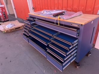 Husky 72 in. W × 24 in. D Heavy Duty 18-Drawer Adjustable Height Mobile Workbench with Solid Wood Top in Matte Blue$999Paramount, CA
