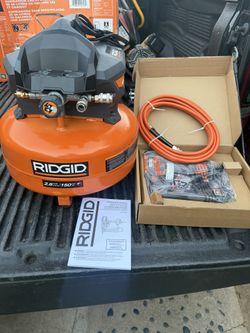 RIDGID 6 Gal. 150 PSI Portable Electric Oil-Free Jobsite Pancake Air Compressor with 25 ft. Air Hose and 18GA Brad Nailer$150Paramount, CA