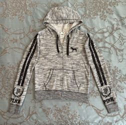 Victoria's Secret PINK Bling Sequins Velour Full Zip Gray Black Hoodie Small$60Peoria, AZ