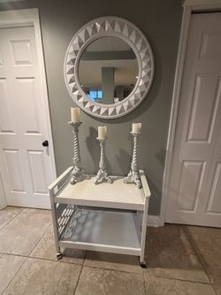 White Three White Candlesticks And White Tv Cart $50Matawan, NJ