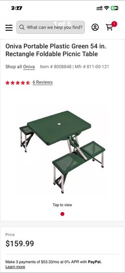 Oniva Portable Plastic Green. Rectangle Foldable Picnic table. Family, holidays, beach, birthdays $75Indian Shores, FL