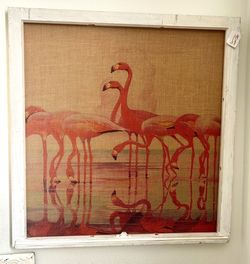 Flamingo Burlap Print Framed In a Vintage Window Frame 36”x37” $279 Now $150. Pick up in Palm Bay$150Palm Bay, FL