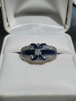 .925 Silver w/ Blue Sapphire Inlay & Round White Sapphire Ring$65Norfolk, VA