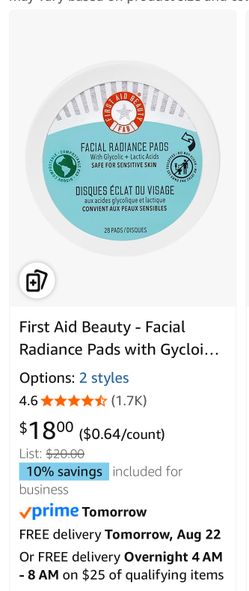 First Aid Beauty - Facial Radiance Pads with Gycloic & Lactic Acids – Daily Exfoliating Pads with AHA that Help Tone & Brighten Skin – Makeup Routine $8Las Vegas, NV