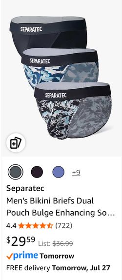 Small Separatec Men's Bikini Briefs Dual Pouch Bulge Enhancing Soft Support Breathable Mens String Bikini Briefs Tagless 3 Pack$15Las Vegas, NV