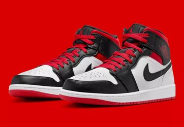 Nike Air Jordan 1 Mid Black Toe White Red Sneakers DQ8426-106 Mens Size 10.5 Woman Size 12$100Romeoville, IL