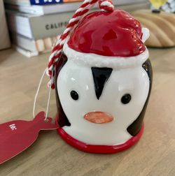 Christmas Red Black PENGUIN SANTA CLAUS Ceramic Christmas Ornament BELL$11West Hollywood, CA