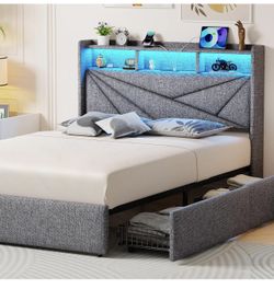 Full Bed frame With 4 Storage Bins, LED, Outlet, New$199Stockton, CA