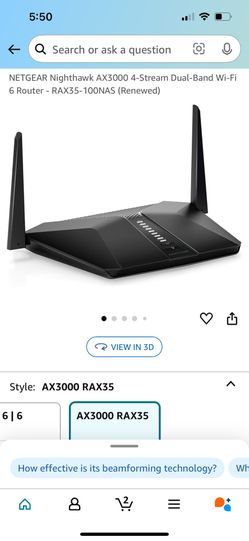 NETGEAR Nighthawk AX3000 4-Stream Dual-Band Wi-Fi 6 Router - RAX35-100NAS$50Long Beach, CA