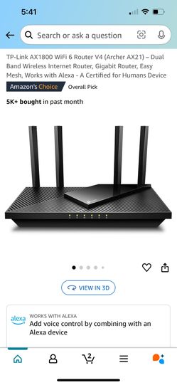 TP-Link AX1800 WiFi 6 Router V4 (Archer AX21) – Dual Band Wireless Internet Router$50Long Beach, CA