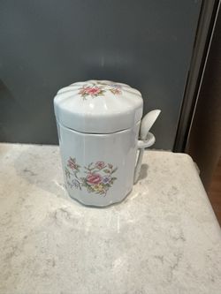 Vintage 1988 FTDA Porcelain Ceramic Floral Canister w/ Spoon $15Framingham, MA