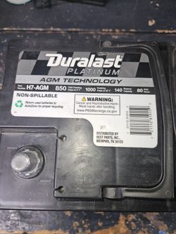 Platinum Duralast H7- AGM Battery $125Sauk Village, IL