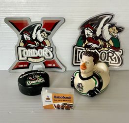 Vintage Bakersfield Condors Hockey Puck Magnets Rubber Ducky Rabobank Bicycle Repair Kit Tap See More for All Info $25Bakersfield, CA