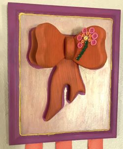 Wood Bow Wall Decor w Hanging Ribbon Organizer Tap See More for All Info$25Bakersfield, CA