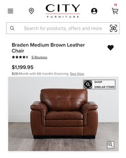 ** BRAND NEW ** LARGE - OVERSIZED - BROWN LEATHER SOFA CHAIR - CITY FURNITURE - BRADEN COLLECTION $798Fort Lauderdale, FL