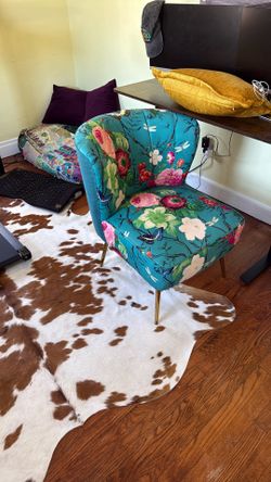 Exquisite Wingback Living Room Chair w/ Floral Design On Italian Designer Fabric Blue Colorful Gold Legs Custom Non Antique Timeless $180St. Petersburg, FL