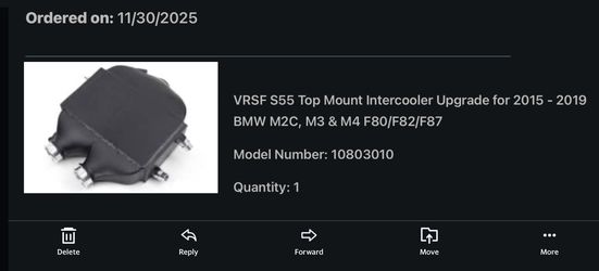 S55 2015 – 2019 BMW M2 Competition, M3 & M4 F80/F82/F87 Top Mount Intercooler$500Escondido, CA
