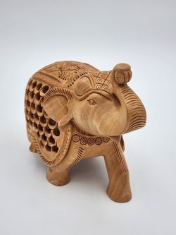 ​Vintage Hand-Carved Wood Jali Elephant – Detailed Lattice Work Baby Elephant Inside$30Forest Park, IL