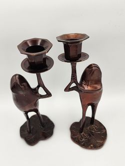 Vintage Frog Candle Holders Pair- Whimsical Standing Toads on Lily Pads -Bronze$80Forest Park, IL