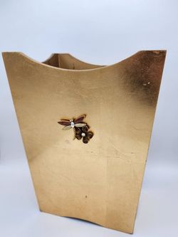 ​Vintage Regency Gold Leaf Wastebasket - Trash Can- Jeweled Dragonfly & Flower$50Forest Park, IL
