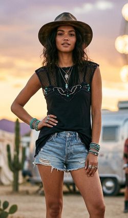 Free People Embellished Mesh Top - Turquoise Studded Lace Boho -Goth Large$20Forest Park, IL
