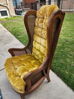 SoldVintage MCM (Made in USA) Lewittes Wingback Chair - Gold Velvet & Cane Sides 1960s/70s OBO$125Forest Park, IL