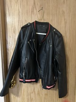 Blank NYC Women’s Black Fall/Winter Leather Jacket Red Stripe Trim Size L $40Stickney, IL