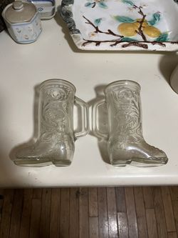 Pair of Vintage Cowboy Boots Glass Mugs - Set of 2 - Western Embossed Beer/Drink Mugs - Great Condition!$0Miami, FL