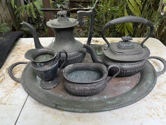 Vintage Silver Plate Tea Set with Tray - F.B. Rogers Silver on Copper + Sheffield Buckinghamshire - 5 Piece$0Miami, FL