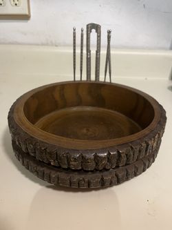 Vintage Rustic Hollowed Log Nut Bowl Tray w/ Nutcracker & Picks - Great Condition!$0Miami, FL