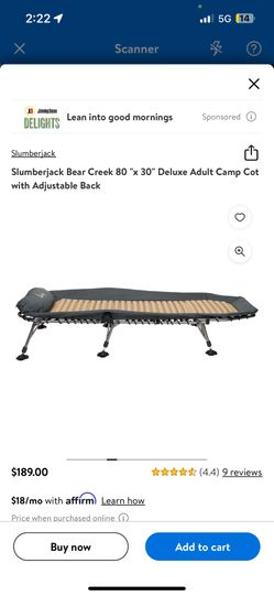 Slumberjack Bear Creek 80 "x 30" Deluxe Adult Camp Cot with Adjustable Back$165Las Vegas, NV
