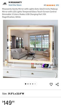 Misavanity Vanity Mirror with Lights Dots 32x23 Inchs Makeup Mirror with LED Lights Tempered Glass Touch Screen Control Dimmable 3 Colors Modes USB Ch$125Baltimore, MD