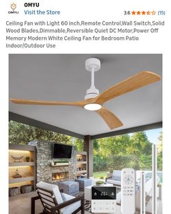 Ceiling Fan with Light 60 inch,Remote Control,Wall Switch,Solid Wood Blades,Dimmable,Reversible Quiet DC Motor,Power Off Memory Modern White Ceiling F$145Baltimore, MD