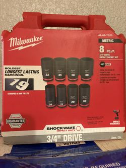 Milwaukee SHOCKWAVE 3/4 in. Drive Metric Deep Well 6 Point Impact Socket Set (8-Piece)$100Glendora, CA