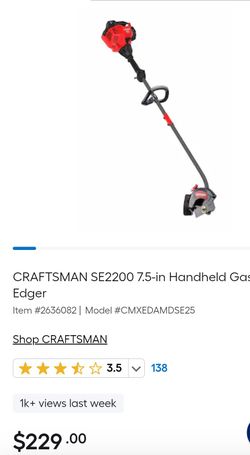 CRAFTSMAN WS2200 25-cc 2-cycle 17-in Straight Shaft Attachment Capable Gas String Trimmer$75Greenville, NC