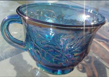 VINTAGE CARNIVAL GLASS IRRIDESCENT BLUE PUNCH BOWL CUPS $60Santa Clara, CA