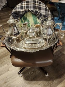 Quality Wallace Coffee Tea Silver Set With Trey And Extra Butter Dish From A Different Set$225Tavares, FL