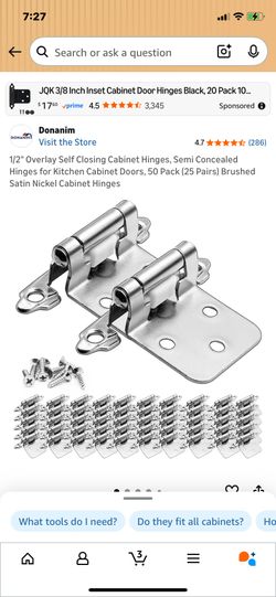 New 1/2 Overlay Self Closing Cabinet Hinges 50 Pack 25 Pairs Brushed Satin Nicole new In Bag$25Clovis, CA
