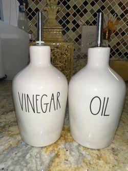 Rae Dunn Artisan Oil & Vinegar Cruets Set of 2 Off White Ceramic Kitchen Decor$15Providence, RI