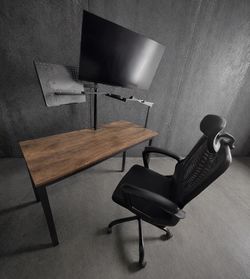 Desk, extra tall single monitor mount stand, and desk lamp, with a free black chair and a free black trash can.$100Miami, FL