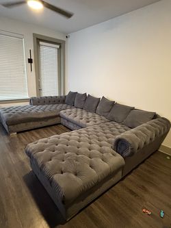 Grey suede oversized sectional$700Dallas, TX