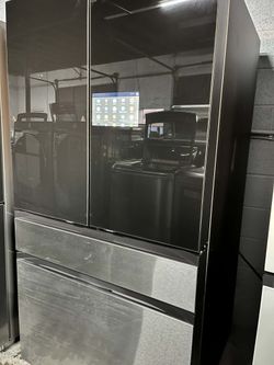 The Samsung is a popular 28 Cu. Ft., 4-Door French Door Refrigerator in Fingerprint Resistant Black Stainless Steel, known for its Food Showcase Door $1,599Arlington, TX